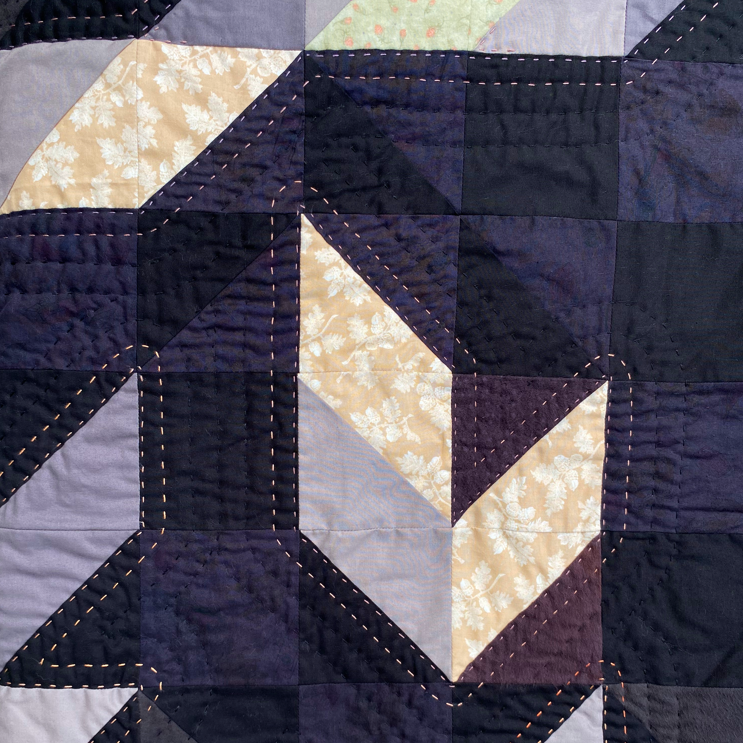 BACK Hive2025Reclaimed, dyed, and commercial fabrics, batting, thread. 94 x 116 inches. View fullsize View fullsize View fullsize View fullsize View fullsize View fullsize